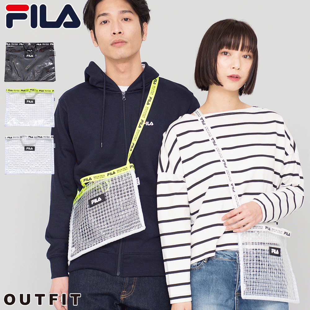 【ポイント5倍】 FILA フィラ クリアサコッシュ ダブルハンドル ショルダーバッグ PVC レデイース メンズ クリアバッグ 2way 透明 スケルトン バッグ ビーチ プール フェス スポーツ おしゃれ かわいい ブランド 春 夏 海 黒 白 中校生 高校生 大人 2021ss