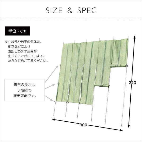 【商品について】ロールアップ洋風たてす 幅300x高さ240cm 2SET【レクト-RECTO-】(たてす すだれ 300幅)■サイズ:外寸:(約)幅300x高さ240cm ※1個あたり※商品重量:(約)4.2kg■カラー:グリーン ブラウン■素材:ポリエチレン、アルミニウム■その他:・お客様組立商品です・梱包サイズ:(約)162x33x15cm(2.9才)x2セット・梱包重量:(約)4.5kg ※1梱包あたり