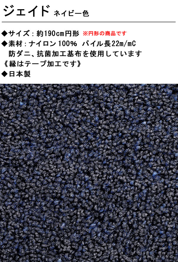 ラグ 190cm巾 ネイビー色 円形(丸型) 快適に過ごすための暮らしにやさしい機能、 くつろぎの時間をやさしく包んでくれる心地よい手触りのラグカーペットです。