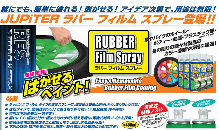 ■呼 番:JRFS-FLGR ■カラー:蛍光 グリーン ■容 量:400ml ■内 容:1本 ■品 番:340885 ■特徴 ● ラッピング フィルム タイプの塗装スプレーで、塗装後は簡単に剥がしたり、塗り直しが可能! ● 速乾タイプで、塗装後約30分で剥ぎ取りが可能!(※完全乾燥 約4時間) ● 特別な下地処理は一切不要! ● 垂れにくく、縦吹き付け・横吹き付けが切り替え可能な、可変式特殊ノズルを採用! ● 塗装後は電気絶縁性のゴム被膜となり、空気、水を遮断可能! ● 下地の防傷・防汚効果に優れ、塩害や酸性雨などの環境にも対応可能! 【使用例】 ●車のグリル ●オートバイのホイール ●ヘルメット ●スマート/マルチ デバイスなど ●自転車 ●キッチン周り